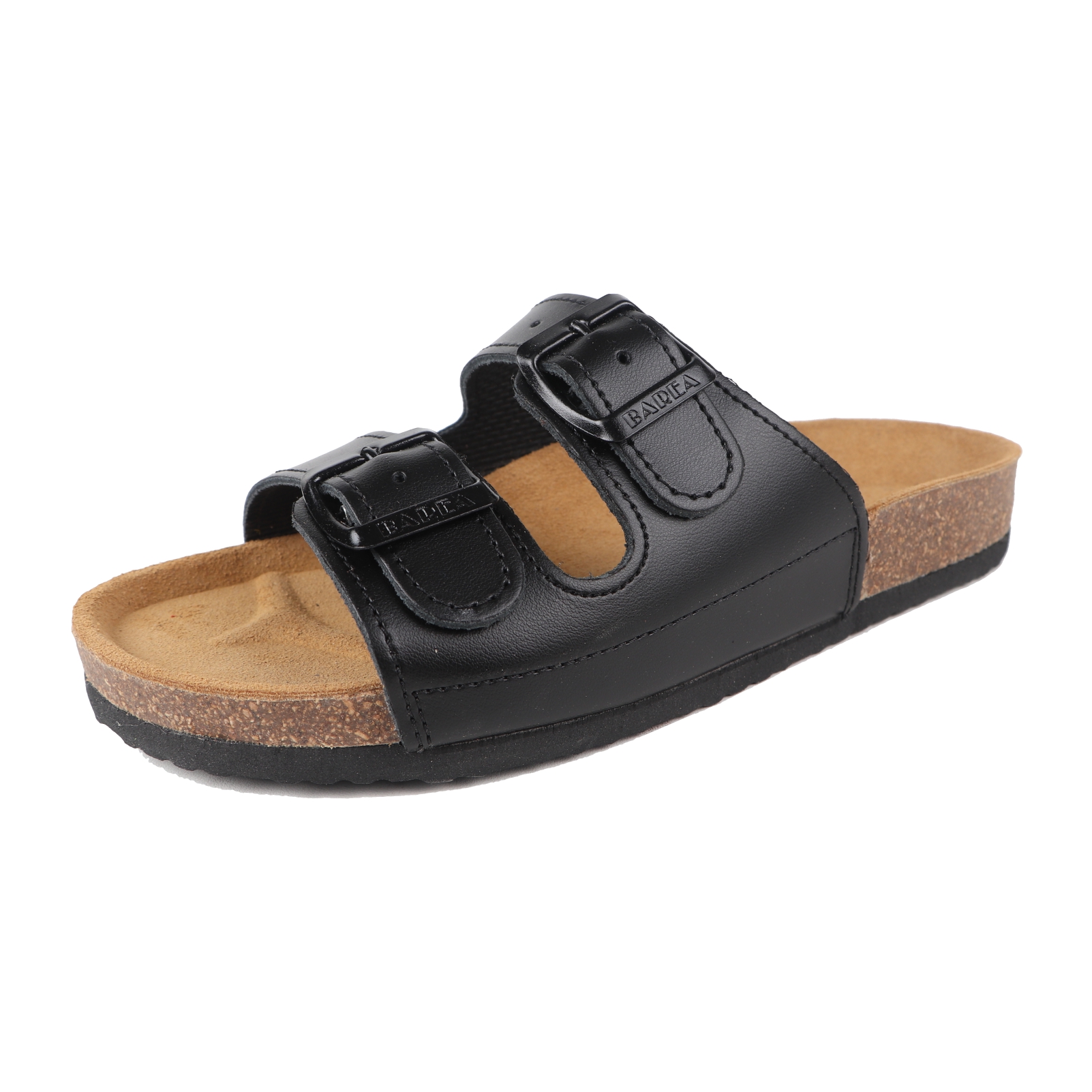 Doprajte si to najlepšie zo Slovenska! Kvalitná voľnočasová a nadštandardne komfortná - to je obuv značky BAREA, tzv. BAREJKY. Ide o anatomicky tvarovanú celokoženú obuv vhodnú do interiéru (ako školská, kancelárska, domáca, prezuvková obuv) alebo do suchého exteriéru (ako vychádzková obuv). Dvojprackový čierny zvršok (pravá hovädzia koža) je pevný a nastaviteľný, takže sa dokonale prispôsobí líniám chodila. Stielka je korková (prírodný korok), anatomicky tvarovaná, potiahnutá béžovou kožou (pravá hovädzia koža), podporuje správne držanie chrbtice a komfortnú chôdzu. Podošva je rovná, vyrábaná z tvrdeného styroporu čiernej farby. Model vyrábame ručným spôsobom, lepením a zalisovaním korkovej stielky na styroporovú podošvu. Obuv nedržíme na sklade. Vyrábame ju na základe Vašej objednávky do 96 h, po prijatí platby.
